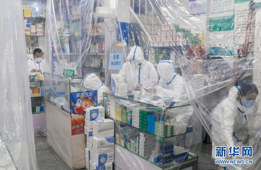 1月24日,在通化市东昌区一家药店,工作人员根据网络订单选配各类药品。