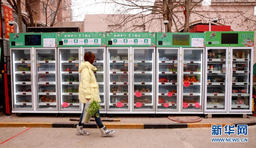 1月24日,居民从智能生鲜自助柜旁走过。新华社发