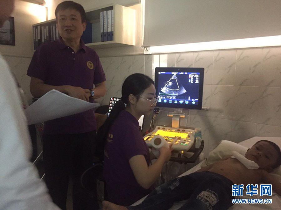 2019年,在柬埔寨金边,中国医生为柬埔寨儿童进行心脏检查。新华社发(谢莫尼勒摄)