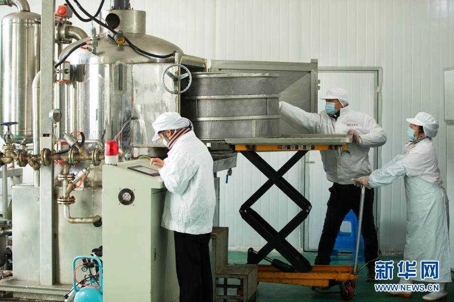 1月24日,在泰州市姜堰区三水街道桥头香菇产业园区一香菇深加工企业,工人对香菇进行真空脱水作业。新华社发(汤德宏 摄)
