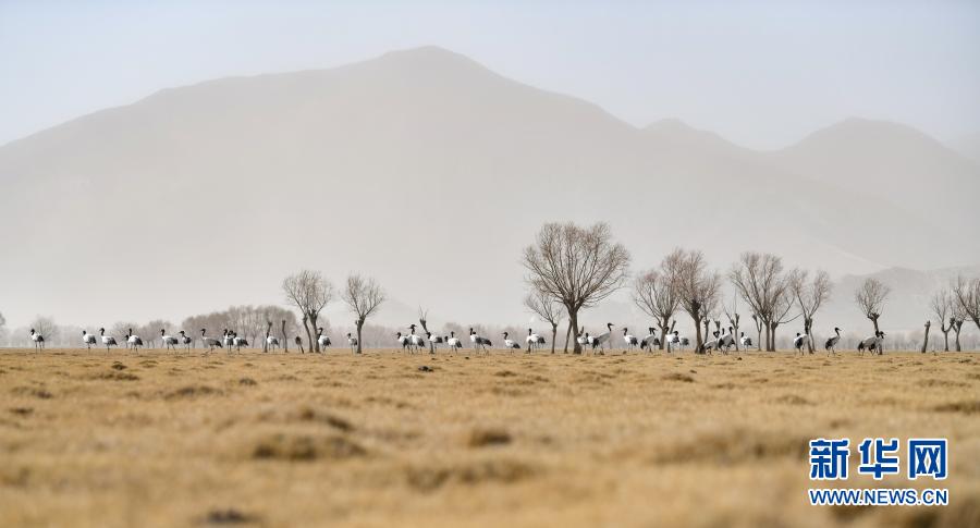 这是栖息在雅鲁藏布江流域的黑颈鹤(2020年3月11日摄)。