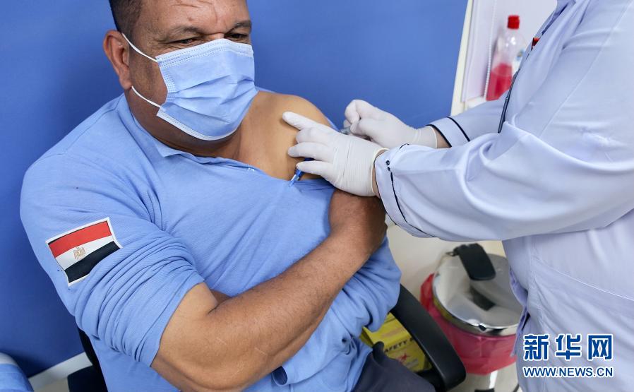 1月24日,在埃及伊斯梅利亚省阿布·哈利法急诊医院,一名医护人员接种中国新冠疫苗。新华社发(阿德尔·伊萨摄)