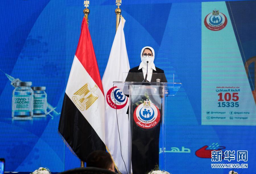 1月24日,在埃及伊斯梅利亚省阿布·哈利法急诊医院,埃及卫生与人口部部长哈拉·扎耶德在新闻发布会上讲话。新华社记者邬惠我摄
