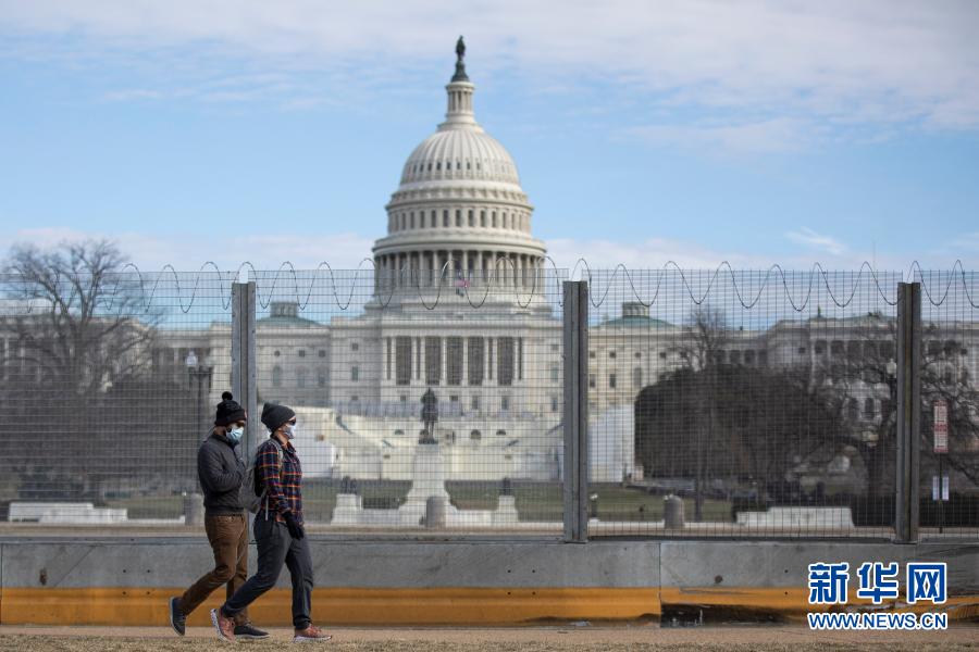 1月24日,在美国首都华盛顿,人们戴着口罩从国会大厦附近经过。新华社发(亚伦 摄)