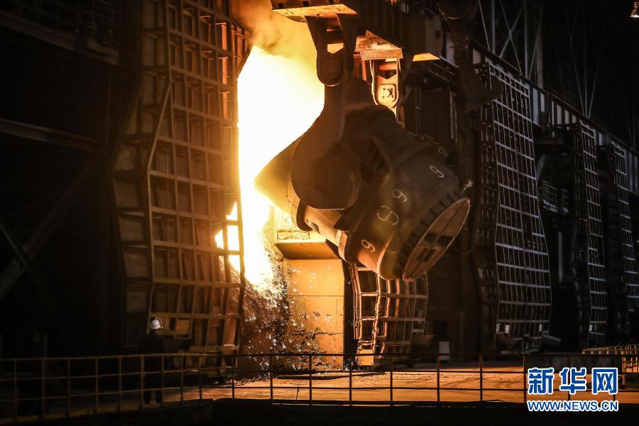 2019年7月5日,工人在鞍钢集团鞍钢股份炼钢总厂炼钢四作业区进行生产作业。新华社记者 潘昱龙 摄