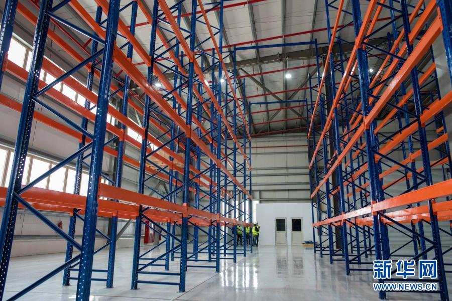 这是1月14日在埃及苏赫奈泉拍摄的中埃·泰达苏伊士经贸合作区泰达·Royal保税仓内的货架。新华社记者 邬惠我 摄