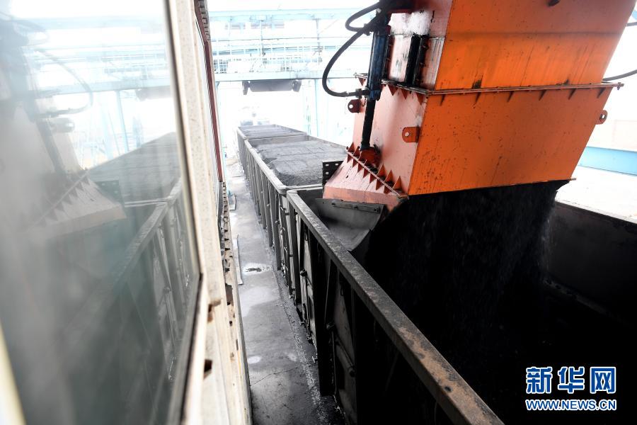 1月26日,在安徽省宿州市钱营孜煤矿,安徽铁道发展集团公司电煤专列在装运电煤。