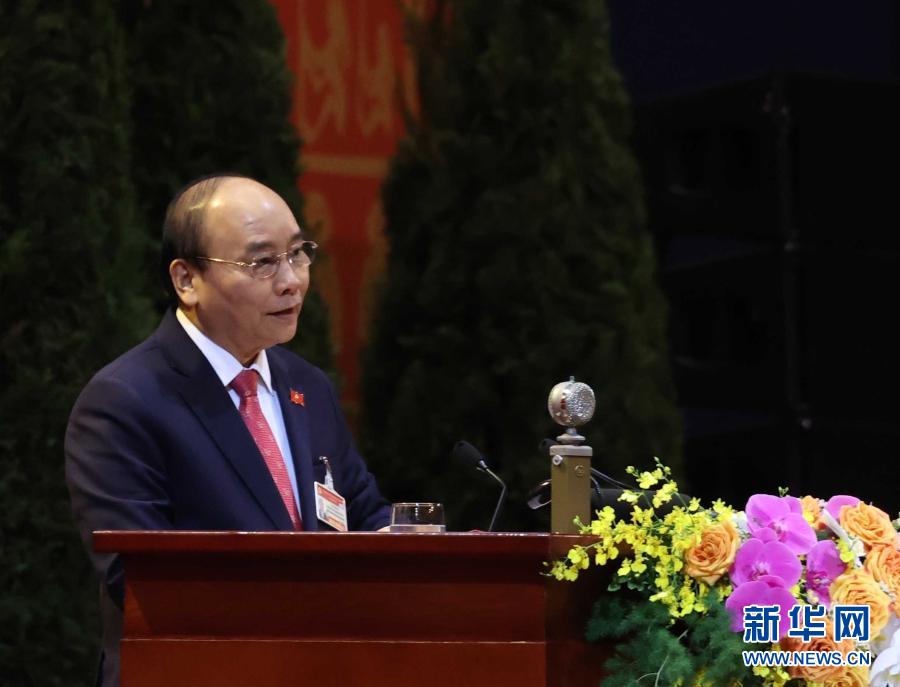 1月26日,在越南首都河内,越共中央政治局委员、政府总理阮春福在越南共产党第十三次全国代表大会开幕式上致辞。