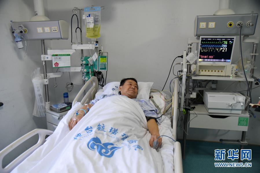 1月26日,山东笏山金矿事故幸存者张某在烟台市毓璜顶医院接受治疗。在事故救援期间,是他写了两张纸条向井上救援人员传递消息。