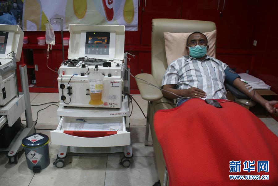 1月26日,印度尼西亚泗水的一名新冠肺炎康复者在捐献血浆。