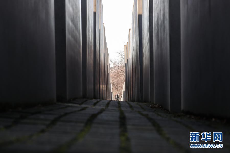 1月26日,一名行人走过德国首都柏林的欧洲被害犹太人纪念碑。新华社记者单宇琦摄