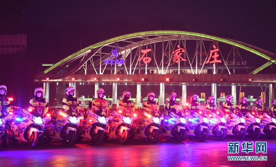 1月27日,石家庄交警在裕华高速口集结送别陕西援冀医疗队。新华社记者 朱旭东 摄