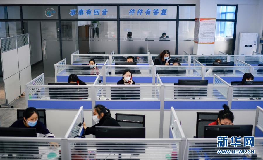 在通化市政务服务热线话务中心,话务员接听群众来电(1月26日摄)。新华社记者 许畅 摄