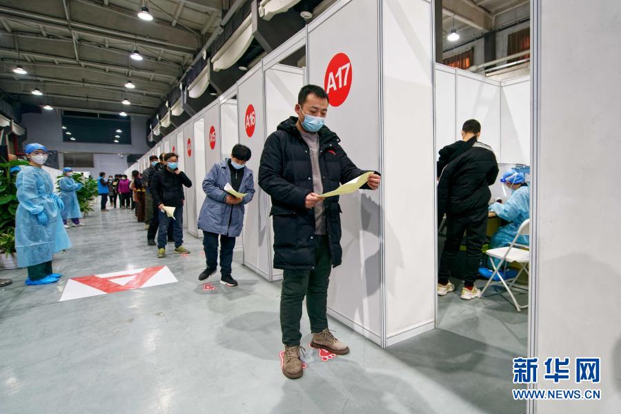1月26日,在位于北京市朝阳规划艺术馆的接种点,武师傅在接种室外等候接种。新华社记者 刘金海 摄
