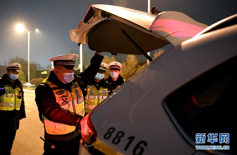 王兵准备开始当晚的夜查(1月25日摄)。王兵是郑州市公安局交通警察支队第六大队夜巡中队中队长,寒夜里他需要多次出警,处理交通事故、查处交通违法、处置突发事件,守护一方安宁。新华社记者李嘉南摄
