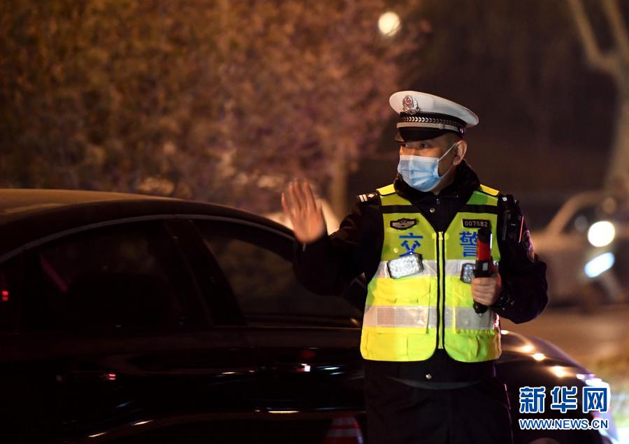 郑州市公安局交通警察支队第六大队夜巡中队中队长王兵在夜查酒驾(1月25日摄)。新华社记者李嘉南摄