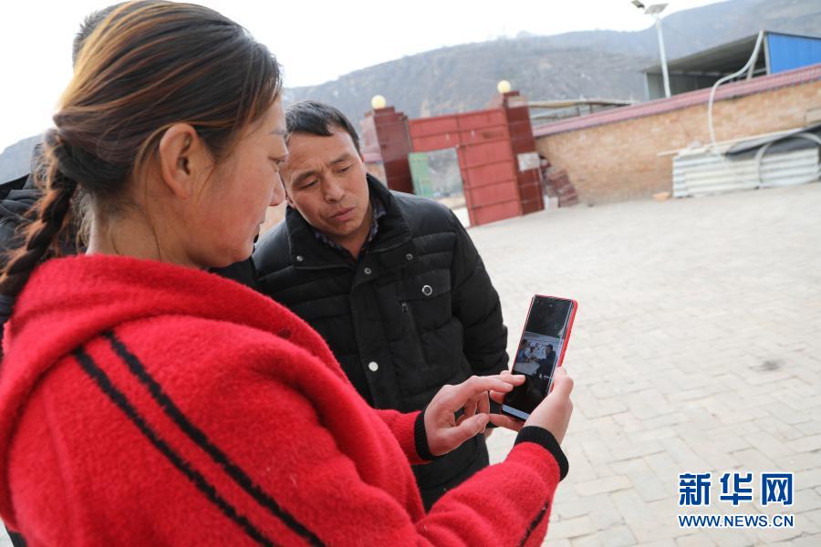 华池县南梁镇高台村村民张应芬与家人翻看邱军的照片(1月23日摄)。新华社记者 马莎 摄