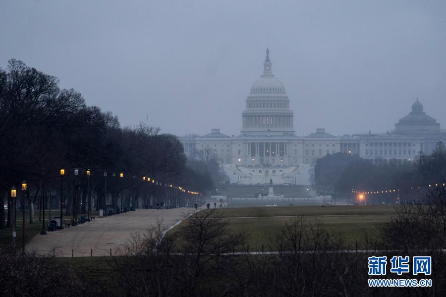 这是1月26日在美国华盛顿拍摄的雨后的国会大厦。新华社记者 刘杰 摄