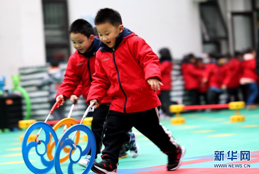 当日,安徽省合肥市瑶海区一幼儿园开展民间体育游戏运动会,孩子们参加“滚铁环”“踩高跷”“独木桥”等传统游戏,在锻炼身体的同时,感受传统文化的魅力。