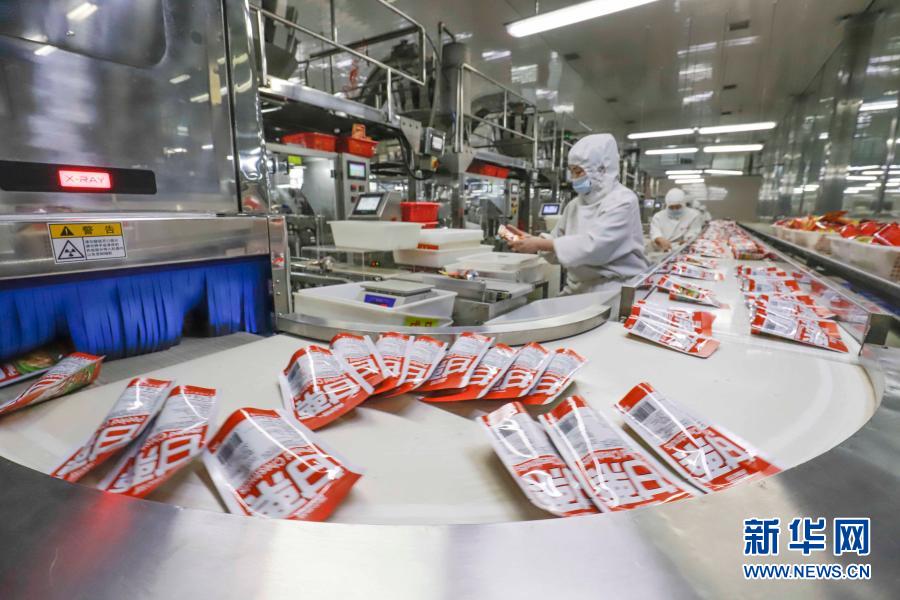1月27日,工人在河北省遵化市一家板栗加工厂车间包装出口栗仁。