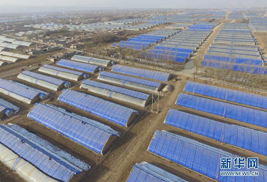 1月27日拍摄的甘肃省临夏回族自治州临夏县先锋乡食用菌种植温棚(无人机照片)。