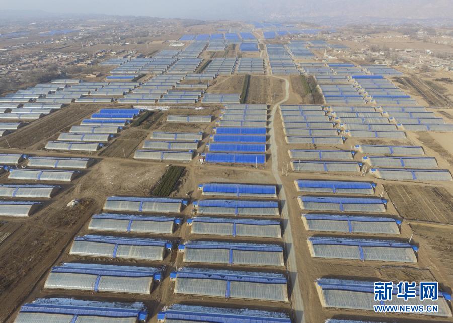 1月27日拍摄的甘肃省临夏回族自治州临夏县先锋乡食用菌种植温棚(无人机照片)。