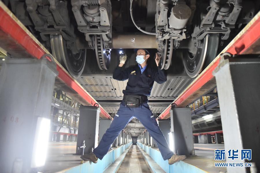 1月28日是春运首日,中国铁路南宁局集团有限公司南宁车辆段南宁动车所的地勤机械师们在春运前夕加强对动车组列车的检修、维护,为旅客护航。