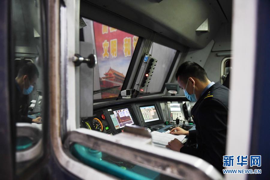 1月28日,驾驶员在北京开往重庆西的3603次列车发车前做准备。