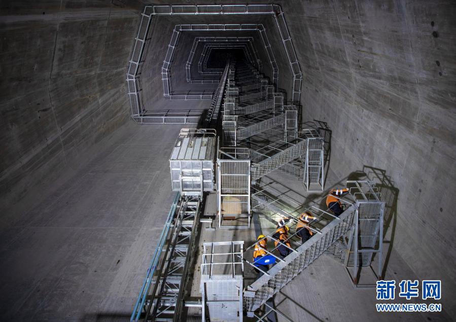 1月27日,中国铁路上海局集团有限公司上海工务段检修人员在沪苏通长江公铁大桥主塔内部检查主塔内壁混凝土结构。
