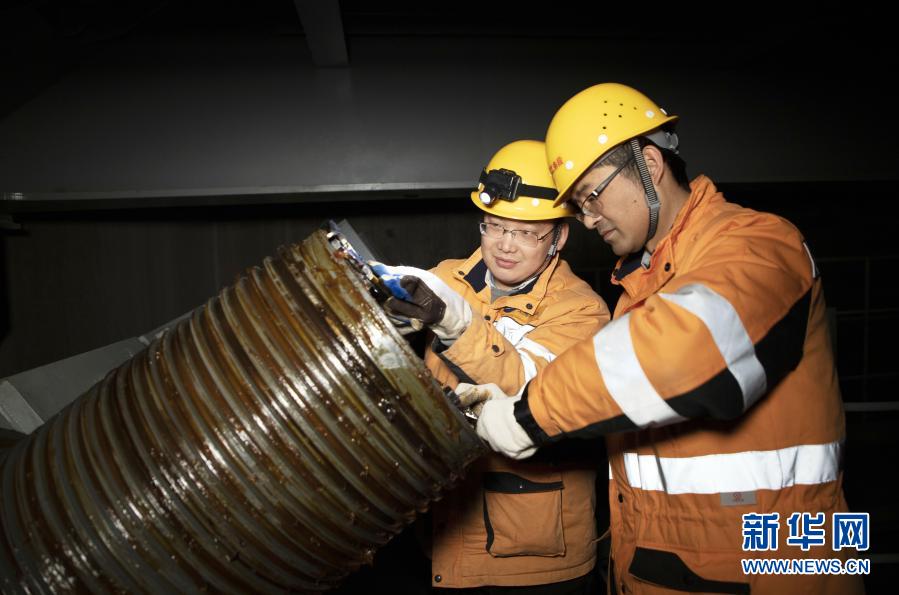 1月27日,中国铁路上海局集团有限公司上海工务段检修人员在沪苏通长江公铁大桥主塔内部维护保养大桥斜拉索锚头。