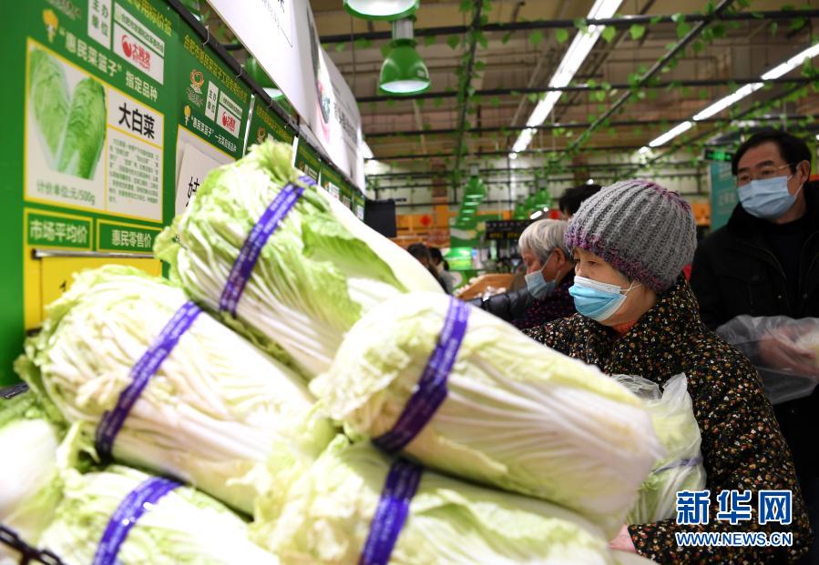 1月28日,消费者在合肥市经开区芙蓉社区一家超市选购“惠民菜”。
