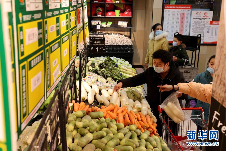 1月28日,在合肥市瑶海区城东街道辖区一大型超市内,市民在选购“惠民菜”。