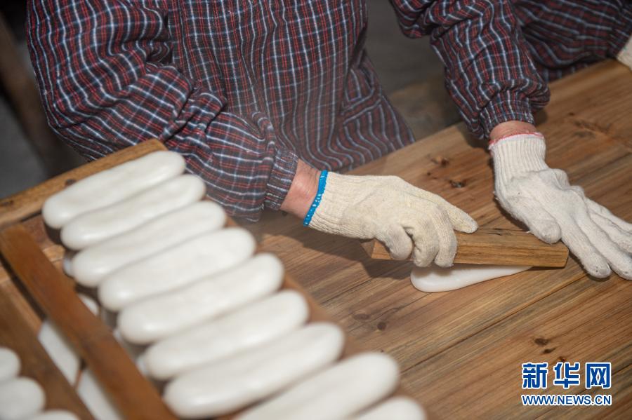 在浙江省余姚市陆埠镇石门村的山谷中,有一间使用传统水碓制作年糕的作坊。作坊主罗文岳今年58岁,是这间水碓年糕作坊的第三代经营者。新春佳节临近,水碓年糕的生产进入旺季,慕名前来购买的顾客络绎不绝。