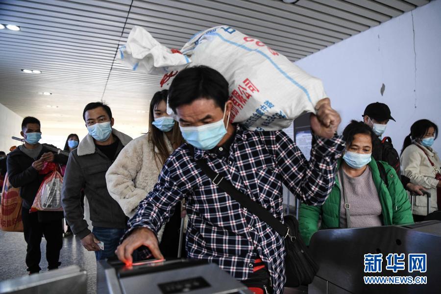 1月28日,广西三江侗族自治县的三江南站迎来务工人员返乡潮。