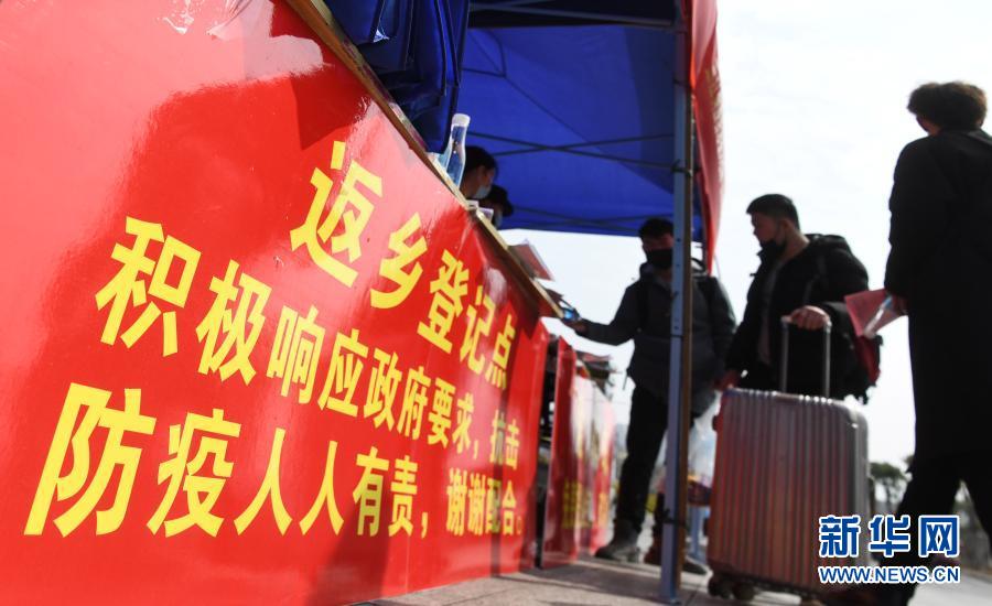 1月28日,在广西三江侗族自治县三江南站,返乡人员在按要求填写个人信息。