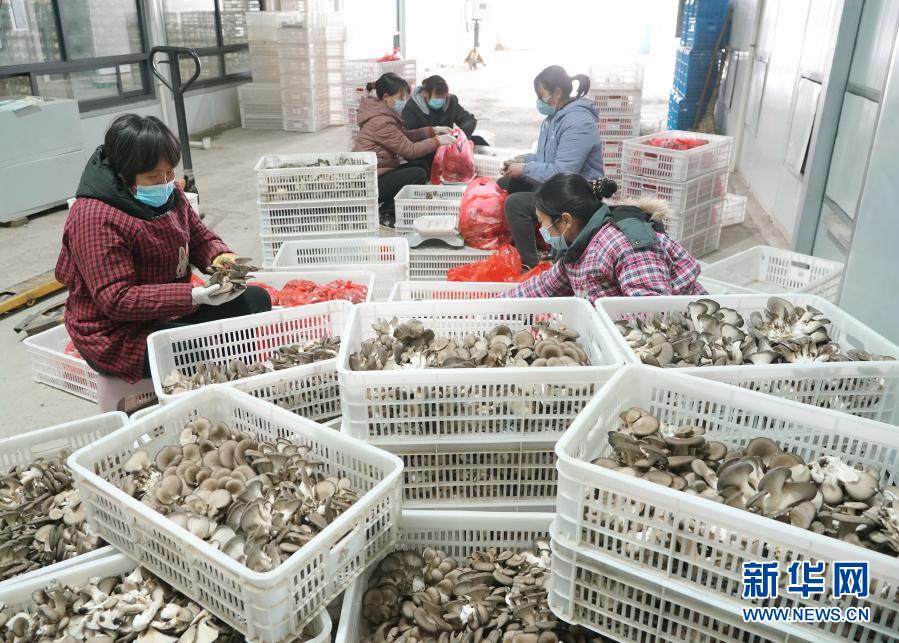 1月28日,赞皇县一家食用菌企业的工人在车间分拣刚采摘的蘑菇。