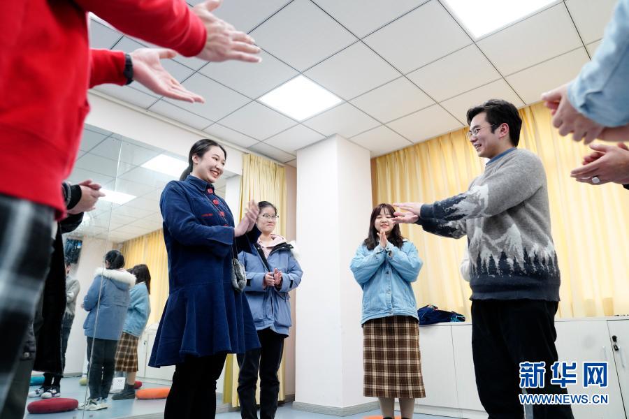 1月27日,在西南大学心理健康教育与服务中心,留校学生在老师的带领下参加“我们在一起”团辅活动。