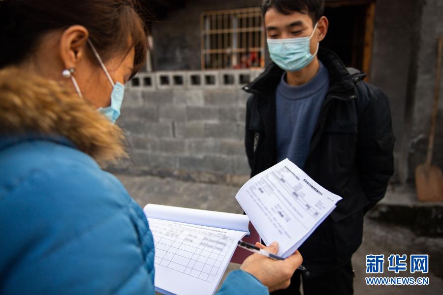 春节临近,部分外出务工人员返回家乡。在湖南省湘西土家族苗族自治州泸溪县浦市镇麻溪口村,村干部入户对低风险地区的返乡村民进行信息登记,助力当地疫情防控。