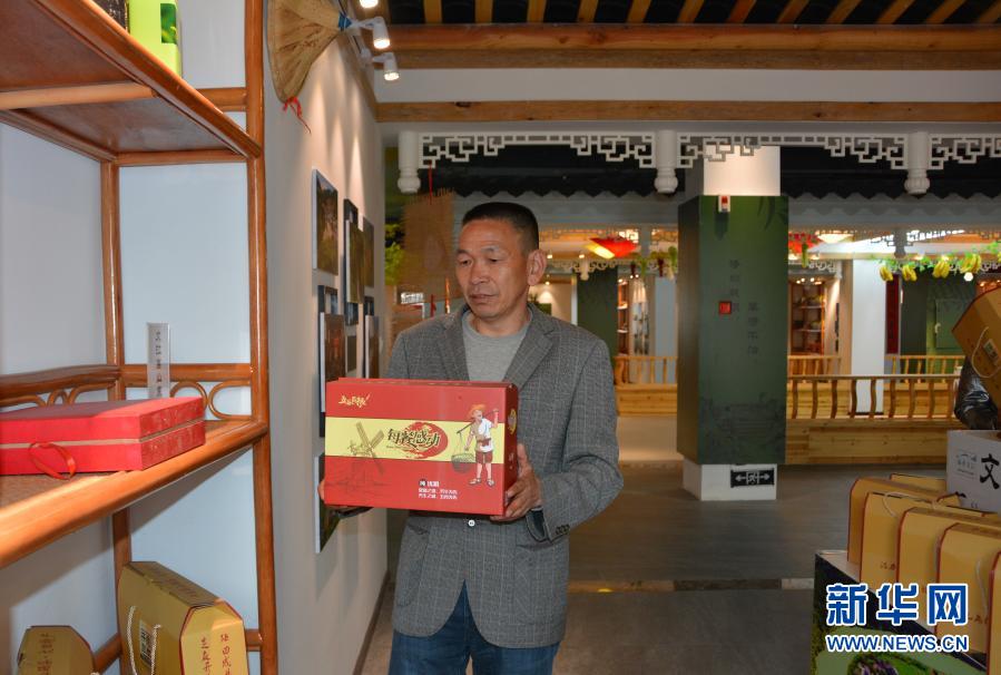 位于福建三明大田县的“阳光1+1”大田助农产业馆内,范代尺为即将到来的年货节做准备(1月20日摄)。新华社记者 吴剑锋 摄