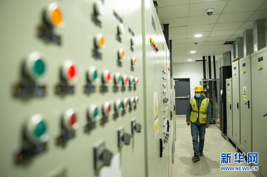 1月28日,工人李艳松在北京环球影城主题公园项目工地的一间游乐演艺设备控制室作业。新华社记者 陈钟昊 摄