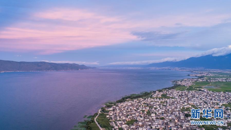 云南大理洱海一景(2018年7月5日摄,无人机照片)。新华社记者胡超摄
