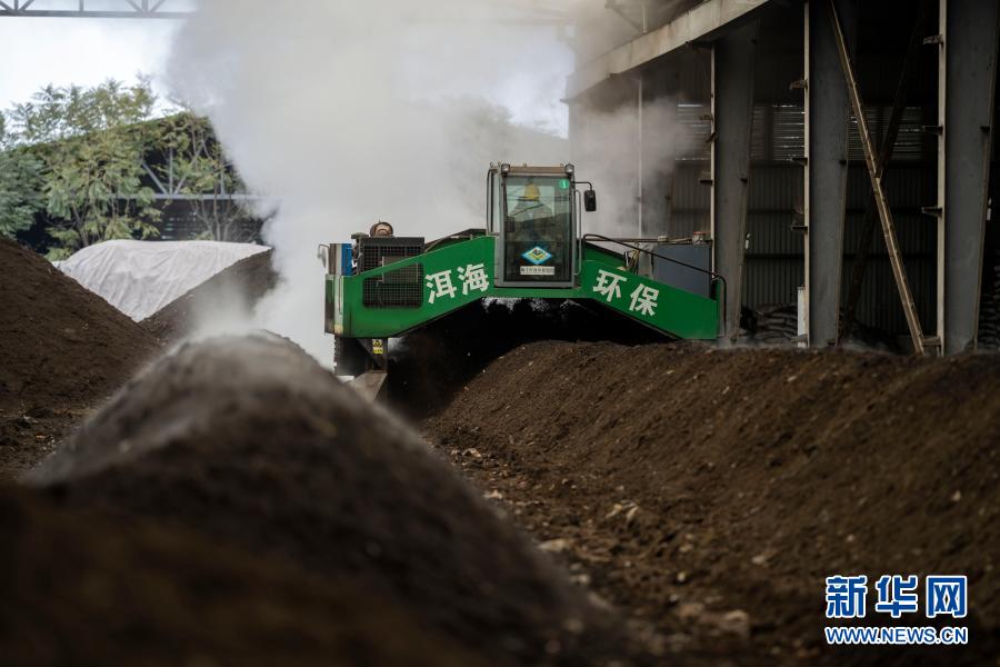 云南顺丰洱海环保科技股份有限公司的工人对收集的牛粪进行加工处理(1月12日摄)。新华社记者江文耀摄