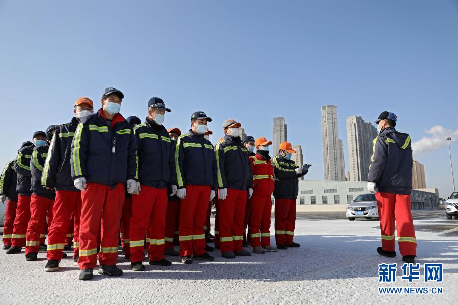 1月29日,冷永政(前排左三)在大连港汽车码头和工友们集结,等待出发命令。