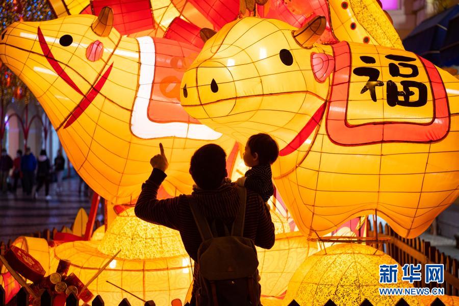 1月29日,市民在澳门议事亭前地观看彩灯。