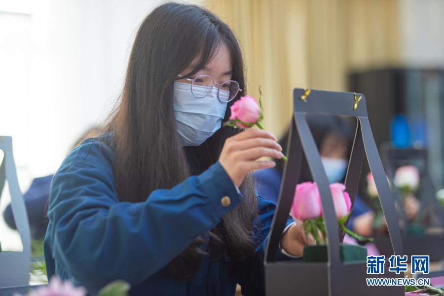 1月29日,职工进行插花创作。