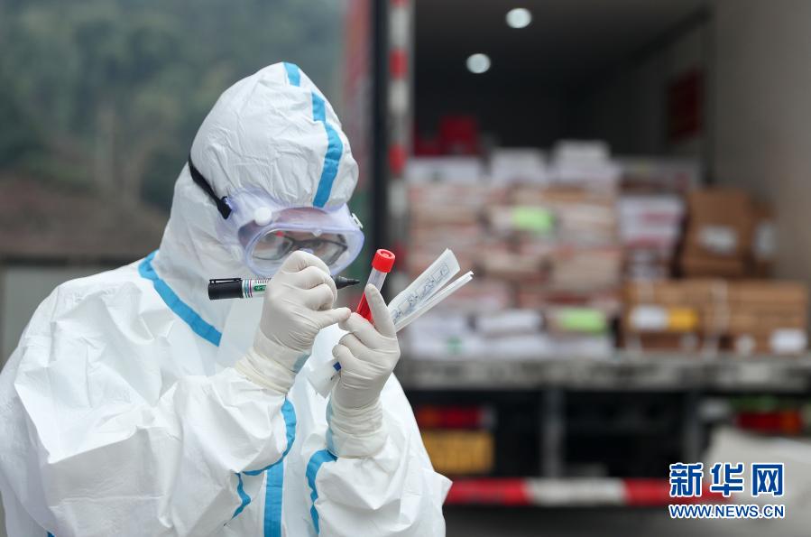 1月29日,在四川省华蓥市冷链食品集中监管仓,工作人员对拟进行核酸检测的进口冷链食品包装样品进行编号。新华社发(邱海鹰 摄)