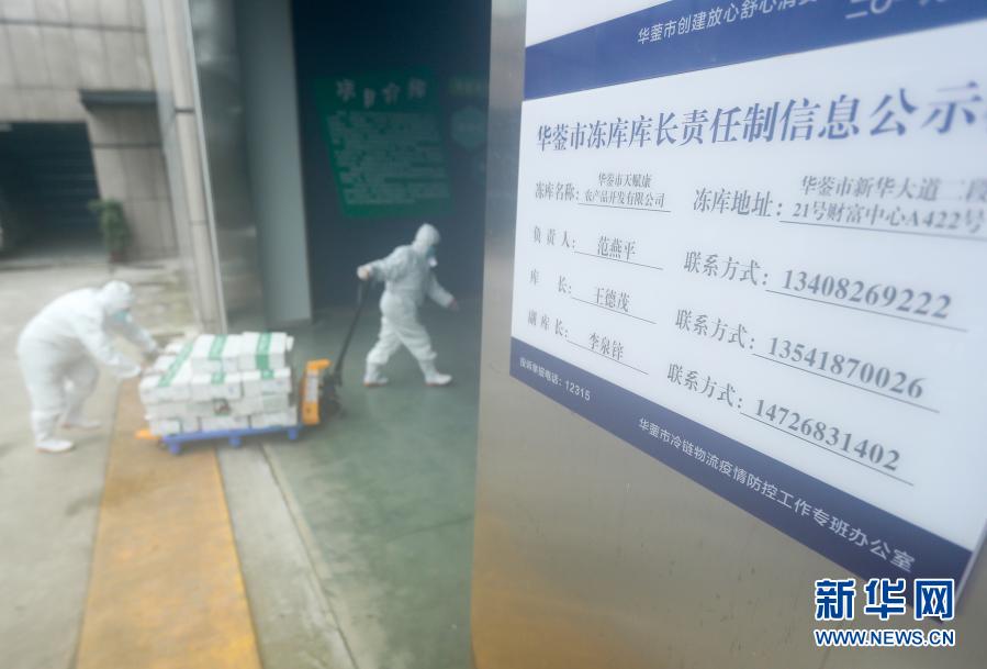 1月29日在四川省华蓥市冷链食品集中监管仓拍摄的冻库库长责任制信息公示牌。新华社发(邱海鹰 摄)