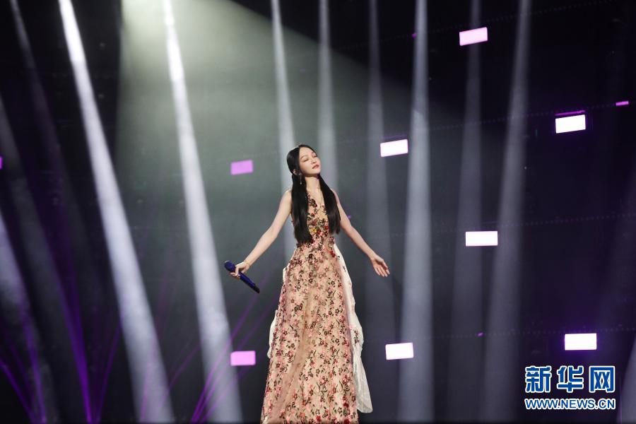歌手张韶涵在网络春晚录制现场演唱歌曲(资料照片)。新华社发