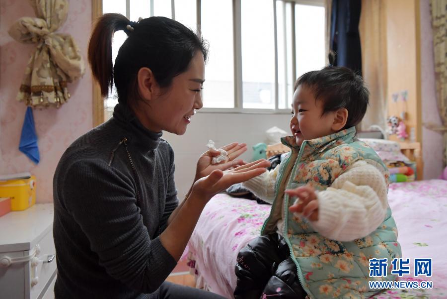 在江西九江的家中,王阿静在陪小女儿玩(1月25日摄)。新华社记者 彭昭之 摄