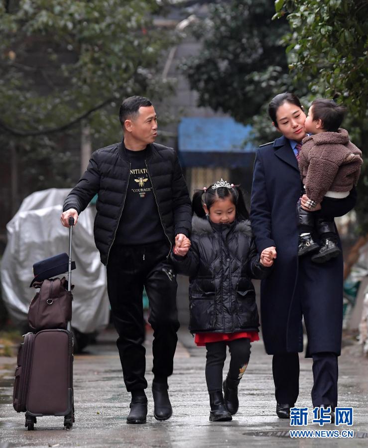 丈夫和女儿们送王阿静前往南昌工作(1月25日摄)。新华社记者 彭昭之 摄